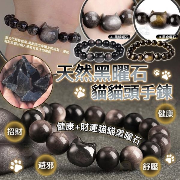 #水晶專門店 #天然 #黑曜石 #貓貓頭 #手鏈