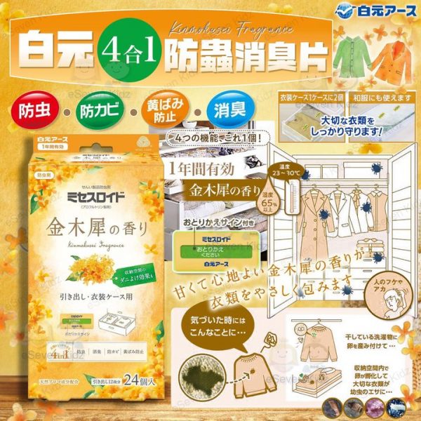 [J403262] 日本白元4合1衣櫃防蟲消臭片(金木犀香味)-24片裝