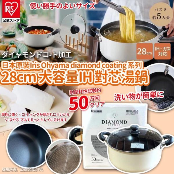 [J407204] 日本 Iris Ohyama 鑽石塗層易潔湯鍋 28cm