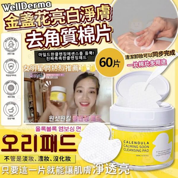 💖韓國知名品牌「Wellderma」最新推出呢款金盞花亮白淨膚去角質棉片, 好多韓國女生都激讚,女明星們熱烈推薦👍👍 黃色小鴨造型,超可愛~~韓國各大綜藝節目瘋狂報導❗