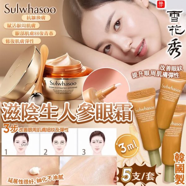🇰🇷雪花秀滋陰生人參眼霜, 官網$1200/20ml🙅🏻依家低至↘️↘️ $67/15ml ( 1套= 3ml* 5支 ) 最平$79/套