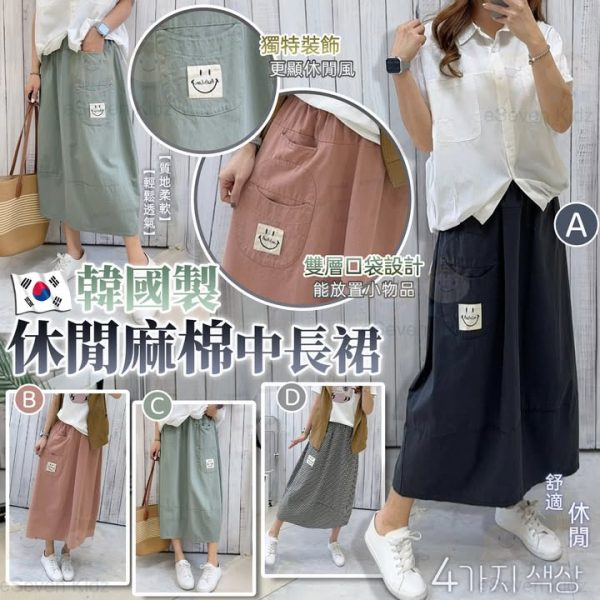 #韓國製 #休閒 #麻棉 #中長裙