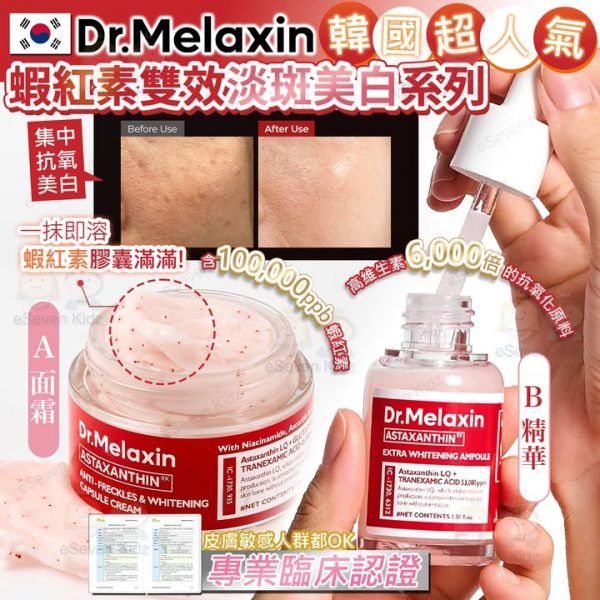 韓國專業醫美品牌 Dr.Melaxin 蝦紅素雙效淡斑美白系列, E7靚價低至$96