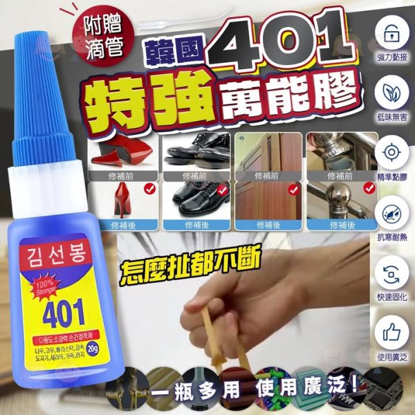 韓國🇰🇷401特強萬能膠 (1套4支), 香港買一支$3x, e7街坊價最平只係$7/支🤣🤣