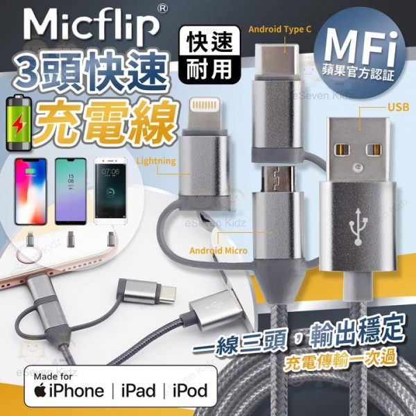 #Micflip #MFI #3合一 #快速充電線