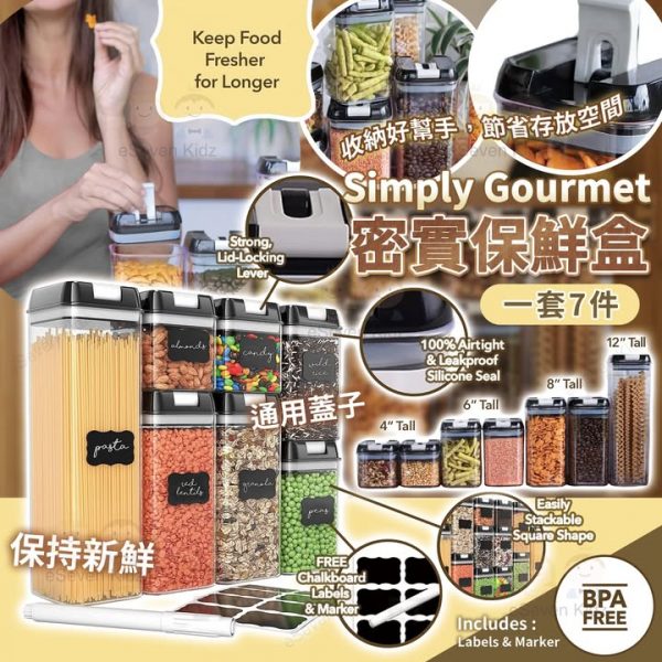 美國🇺🇸 Simply Gourmet密實保鮮盒-7件套, 美國賣緊$34.99美金= $280, E7優惠價3折, 一套7個只係$63/套, 除開只係$9/個🤣🤣