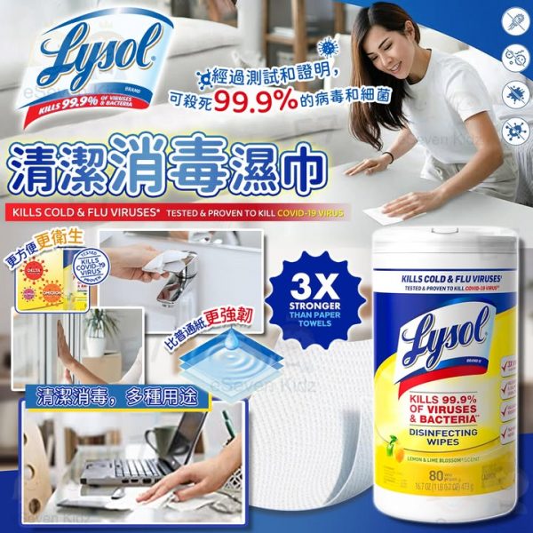 [U503131] 美國 Lysol 消毒濕紙巾- 檸檬青檸味 (1樽80張)
