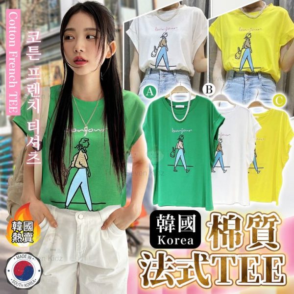 韓國棉質法式少女圖案TEE, 原價$23X, 今日勁減$85/件🤣🤣