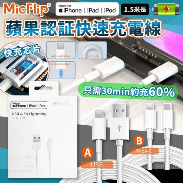 美國 🇺🇸Micflip MFI 快速充電數據線! 原價12.99美金= $104/條, E7靚價$39/條🤣🤣