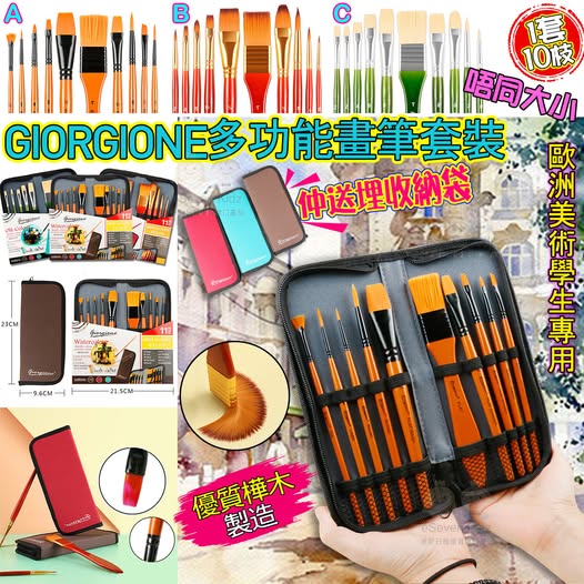🔥GIORGIONE ART PAINT BEUSH SET 🎨《1套10支畫筆連收納袋》🖌 ❌❌原價 $21X❌❌, 🌈今日勁減只售🔥$42, 🤭平均每支只係$4.2❗唔用黎畫畫, 買黎掃下塵都抵!!