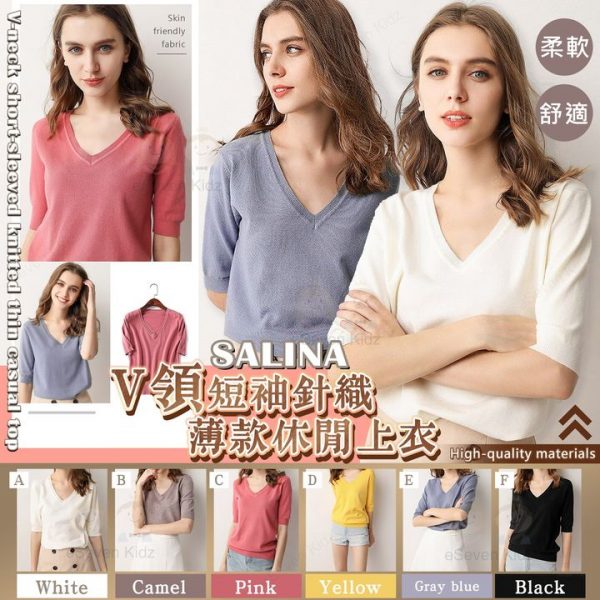 #淨色勁易襯 #必備靚款 #SALINA #V領針織 #短袖 #上衣