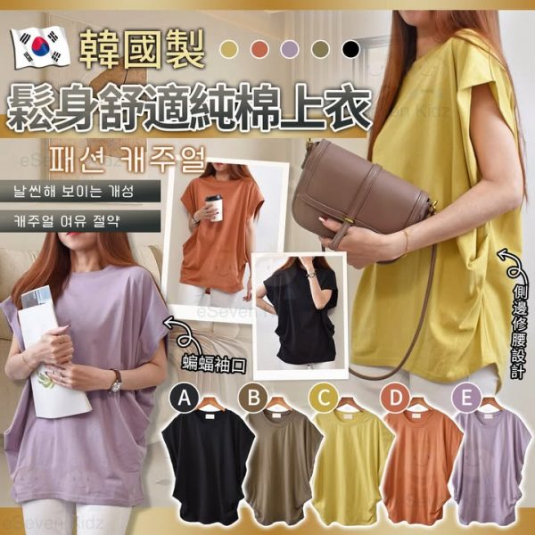 韓國製🇰🇷蝙蝠袖鬆身純棉上衣, 原價$2xx, e7韓國直送最平只係$85/件🤣🤣