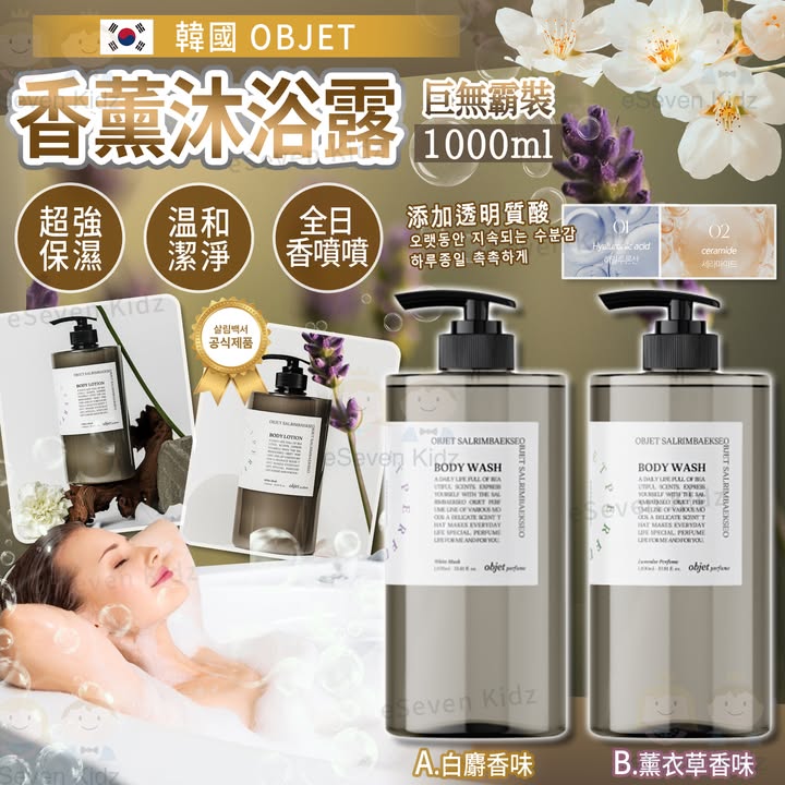 [K412313] 👏👏保濕, 安眠, 鎮定, 晚晚都有覺好瞓😴😴 韓國製OBJET香薰潤膚乳, 原價$1xx 支,韓國大減價最平$59 /支 $67/支 $59/支 (2支或以上)🌸2款香味選: A. 薰衣草香味 B. 白麝香味 (下單時請選擇喜好款式)韓國objet 香薰精油系列lotion,將天然精油加入lotion 不但保濕💦仲有助放鬆心情💆🏻‍♀️提升睡眠質數😴😴。🤫精油lotion 一向好用, 香噴噴好似搽左香水味 . 最正係添加左玻尿酸成份, 保濕度高, 秋冬天氣咁乾, 必搽!! 呢兩款原價成$1xx 支,今次大減價 $59就買到,仲唔掃定貨💪🏻💪🏻🤗今次呢兩款味必買, 佢不但可以鎮定情緒, 消除疲勞, 仲有助放鬆心情, 幫助入眠!😬white musk 白麝香味本身就係皇牌中嘅皇牌, 最受女士們歡迎。💃🏻勁好聞, 晚上臨瞓前搽一搽, 保濕得黎又香噴噴, 仲有助提高睡眠質素,瞓得好啲人都精神啲, 健康啲✌🏼✌🏼📌容量: 1000ml🔸🔸🔸🔸🔸🔸🔸🔸🔸🔸🔸🔸🔸 (預計到港日期: 2025年2月尾) [K412313] 韓國製OBJET香薰潤膚乳1000ml $67/支 $59/支 (2支或以上)取貨方式: A. 佐敦門巿取 B. E7 聯乘順豐智能櫃/順豐站優惠 $18起 (此為本公司提供之優惠價格, 需預先入帳)* (需指定順豐櫃或順豐站,但不包括送工商,住宅和便利店) C. TGS 本地派送服務(包住宅) +$30起 (優惠價格需先入帳) D. 順豐到付 (可以順豐站/工商區/上門) 此產品到付約$30起,運費以順豐最終收費為準 *智能櫃/順豐站優惠需受條款與限制約束 **TGS 本地派送服務 (Trinity Global Solutions Ltd) https://www.trinitygs.com/^^為方便統一計算訂貨數量, 請大家盡量在POST 下留言, 多謝幫忙購買方法: 1.如要購買請在貨品下留言, 請注明款式, 尺碼和數量 (如有) 2.同事會於24小時內回覆落單和入數資料 3.麻煩於3個工作天內入數和PM 入數紙 (客人若要寄貨請在付款後通知: 收件人姓名, 地址和聯絡電話, 若沒注明, 收貨時間會有延誤) 4 收到入數後我們會跟你確認, 貨到後我們會再通知你來取貨或郵寄寄出~POST上會註明大約到貨日期, 我們收到入數後會安排訂貨, 貨到會PM 通知客人, 如果貨品訂不到或供應商出貨有問題, 我們會全數退款。門巿地址: 佐敦上海街42-46號忠和商業中心9樓01室 (佐敦地鐵站C2出口) 辦公時間: 星期一至五: 10:00-19:00, 星期六: 11:00-4:00 (星期日及公眾假期休息)^^歡迎PM查詢批發^^#保濕 #安眠, #鎮定 #晚晚都有覺好瞓 #韓國製 #OBJET #香薰 #潤膚乳