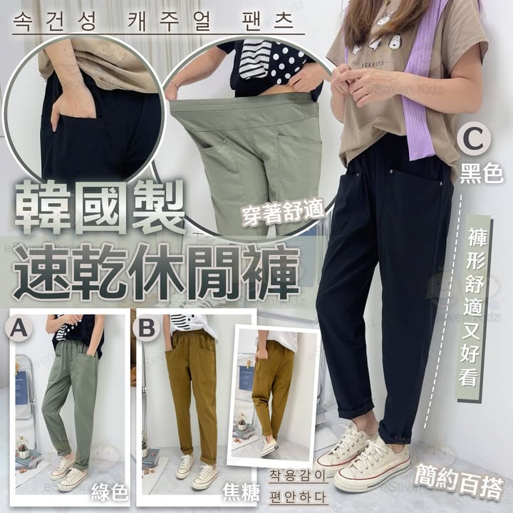 [K502142] 👏👏韓國新款, 累計巳賣超過萬絛🙀🙀 韓國製速乾休閒長褲, 🪓🪓代購賣緊$19X/條, E7優惠價低至$98/條🤣🤣😁😁 $108/條 $98/條 (2條或以上)🌈3色選: A. 綠色 B. 焦糖色 C. 黑色 (📌下單時請選擇喜好款式)💃🏻上年好多客人買左韓國製嘅褲都大讚好正,今次呢款都係超彈性仲係速乾面料著上身好舒服😆😆呢款休閒褲一年四季都啱著👖彈性強著上身超舒服又易襯,係香港買一條韓國製嘅褲起碼二三百,😻😻我地直接同 supplier 拎貨,所以呢條褲最平只係 $98 真係好鬼抵 🦾🦾📏尺寸: 腰28-60吋 臀54吋 長97cm 產地: 韓製🇰🇷 材質: 速乾面料🔸🔸🔸🔸🔸🔸🔸🔸🔸🔸🔸🔸🔸🔸🔸 (預計到港日期: 2025年3月尾) [K502142] 韓國製速乾休閒長褲 $108/條 $98/條 (2條或以上) **本店接受支付寶HK, WECHAT PAY HK, 八達通(必須到店付)**取貨方式: A. 佐敦門巿取 B. E7 聯乘順豐智能櫃/順豐站優惠 $18起 (此為本公司提供之優惠價格, 需預先入帳)* (需指定順豐櫃或順豐站,但不包括送工商,住宅和便利店) C. TGS 本地派送服務(包住宅) +$30起 (優惠價格需先入帳) D. 順豐到付 (可以順豐站/工商區/上門) 此產品到付約$30起,運費以順豐最終收費為準 *智能櫃/順豐站優惠需受條款與限制約束 **TGS 本地派送服務 (Trinity Global Solutions Ltd) https://www.trinitygs.com/^^為方便統一計算訂貨數量, 請大家盡量在POST 下留言, 多謝幫忙購買方法: 1.如要購買請在貨品下留言, 請注明款式, 尺碼和數量 (如有) 2.同事會於24小時內回覆落單和入數資料 3.麻煩於3個工作天內入數和PM 入數紙 (客人若要寄貨請在付款後通知: 收件人姓名, 地址和聯絡電話, 若沒注明, 收貨時間會有延誤) 4 收到入數後我們會跟你確認, 貨到後我們會再通知你來取貨或郵寄寄出~POST上會註明大約到貨日期, 我們收到入數後會安排訂貨, 貨到會PM 通知客人, 如果貨品訂不到或供應商出貨有問題, 我們會全數退款。門巿地址: 佐敦上海街42-46號忠和商業中心9樓01室 (佐敦地鐵站C2出口) 辦公時間: 星期一至五: 10:00-19:00, 星期六: 11:00-4:00 (星期日及公眾假期休息)^^歡迎PM查詢批發^^#韓國新款 #韓國製 #速乾 #休閒 #長褲,
